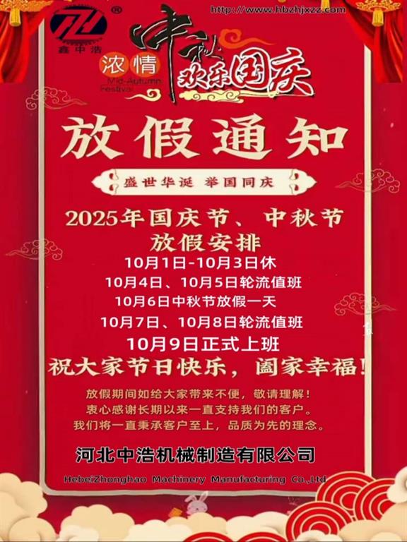 浓情中秋 欢乐国庆 放假通知-河北中浩机械制造有限公司