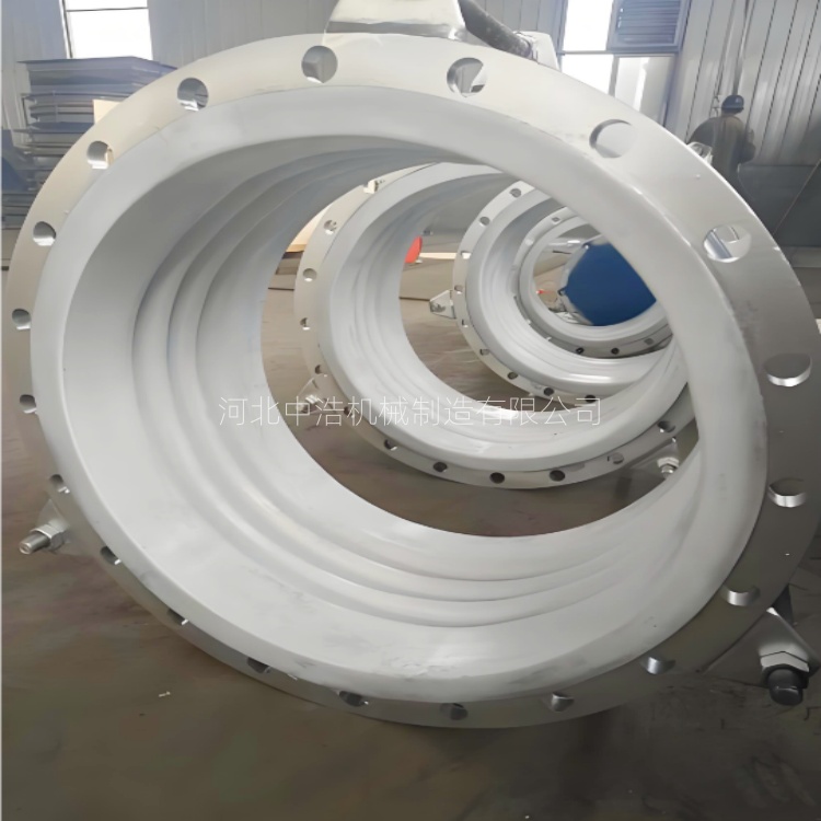 中浩机械从源头的选型与出厂进行优化, 我们一般选择整体模压成型的衬四氟补偿器,避免衬四氟拼接式衬层,减少拼接处因应力集中而脱落风险,出厂前切记做衬层附着力测试和气密性实验,却使衬层与金属波纹之间无气泡和虚黏。其二杜绝安装环节强制受力,在安装时使波纹补偿器处于自由状态不可为配合管道长度强行拉扯或挤压,否则四氟层会因为波纹变形开裂而脱落位移量要严格遵循相关参数标准。安装时用水平仪校准轴线避免管道轴向偏差,切记不要用补偿器本身校正横向错位或扭转,防止衬层受力而破损。螺栓要按对角顺序分次扭紧,不可单侧拧紧,避免法兰衬四氟层因局部挤压变形而脱离波纹。