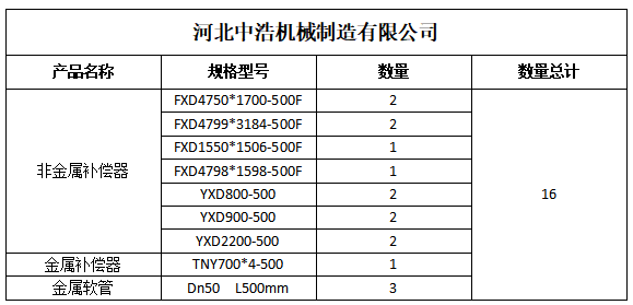 尊敬的李经理,感谢您对河北中浩 产品信任与选择。很高兴通知您,您在河北中浩订购非金属蒙皮膨胀节、金属波纹补偿器、金属波纹软管等产品, 已经完成生产、检验、包装等全部工作,请您做好收货准备,到货后及时查验。